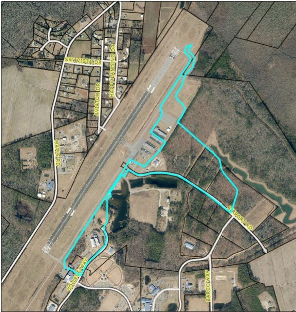 The course starts behind the College of the Albemarle on the tarmac. Parking is the same as last year, just a better spot for the start and finish. There are new taxiways being built this year and may be finished by race day. If they are, the course will alter to include running down these taxiways as they will not be active by race day.